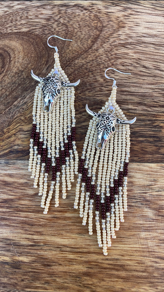 Beaded Earrings w/Cow Skull Pendants