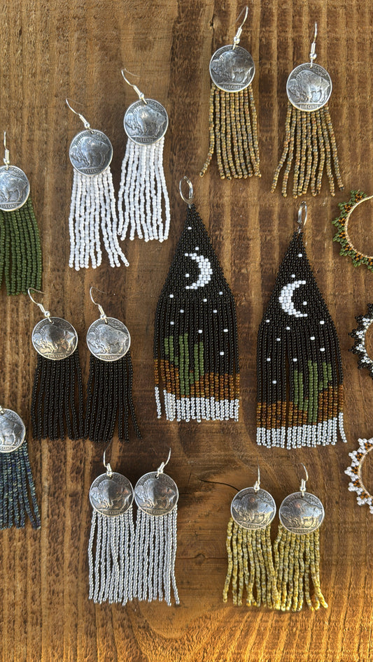 Beaded Earrings w/Replica Buffalo Nickel Conchos